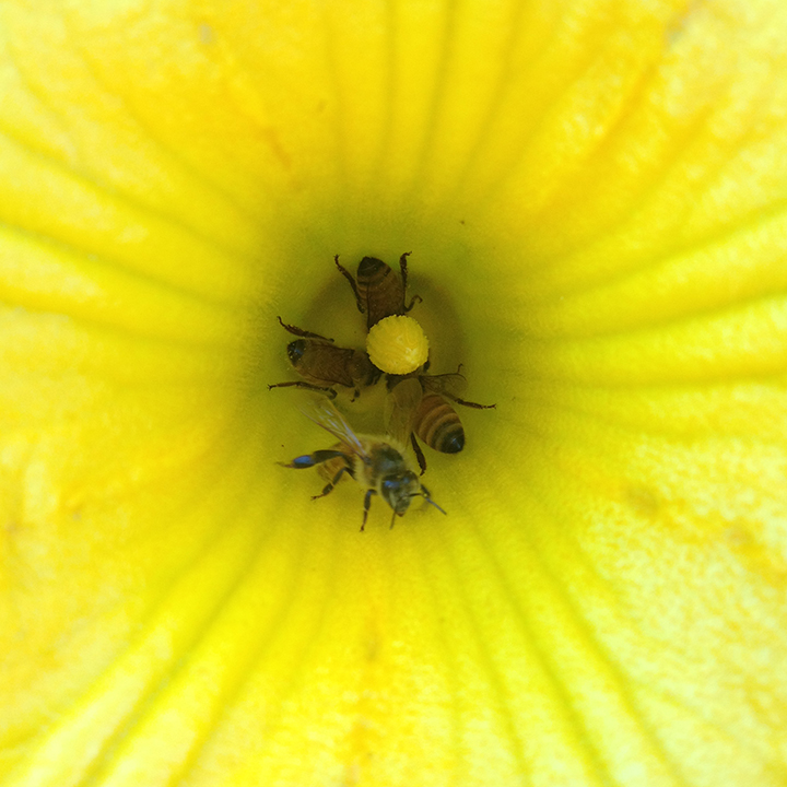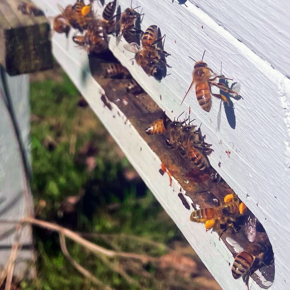 TTF keeps between 4 and 6 honeybee hives, primarily for pollination of crops but also for some of the gifts that honeybees share: honey, wax for candles and balms, and propolis for tinctures. We definitely operate on an amateur basis, but occasionally sell our honey and balms on the farmstand.