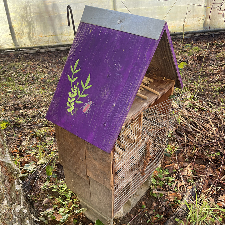 In addition to honeybees, we try to encourage a wide range of native pollinating insects – such as mason bees, bumblebees, and soldier beetles (among others). We provide insect houses and safe places for insects to overwinter, as well as planting diverse flowers, plants, and trees along with our crops – with the hopes that our beneficial insects don’t have to forgage much beyond our pesticide-free boundaries!