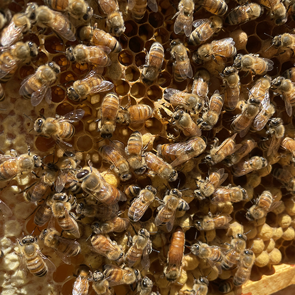 Our small apiary is likewise not certified organic or CNG, but we do use organic practices for their care. To help our honeybees with their #2 enemy in the U.S., the varroa mite, we treat using oxalic acid (sponges and vaporizing) and biannual strips of Formic Pro. Some people consider varroa their #1 enemy, but we believe pesticides fulfill that role.